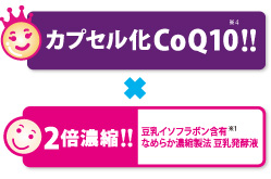 ■〔 2倍濃縮の豆乳イソフラボン*1とカプセル化CoQ10*4配合で、夏のお肌をダブルサポート 〕