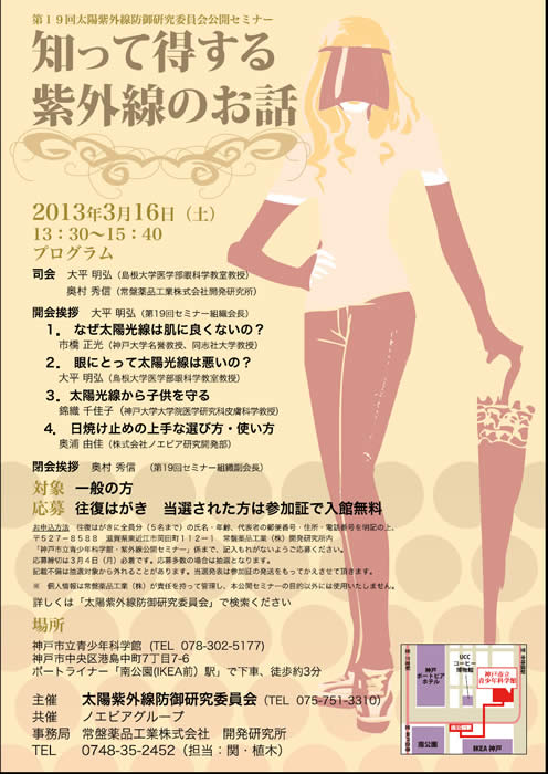 HOME > ニューストップ > 2013年エントリー > 【3月4日締切り迫る】“太陽光線から子供を守る”〜「知って得する紫外線のお話」公開セミナー(神戸市)参加者募集のお知らせ