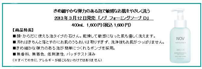 臨床皮膚医学に基づいて敏感肌と向き合ってきた低刺激性化粧品ブランド『ノブ』(ノエビアグループ常盤薬品工業梶^本社:東京都中央区)は、3月12日「フォーミングソープ D」発売に伴い、生活者の春先の肌の状態と洗顔に関する実態を把握するための調査を実施しました。 詳細は下記のとおりです。