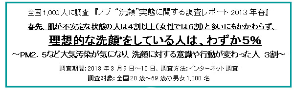 【生活者調査】『ノブ“洗顔”実態に関する調査レポート2013年春』〜春先、肌が不安定な状態の人は4割以上(女性では6割)と多いにもかかわらず、 理想的な洗顔をしている人は、わずか5%〜