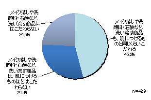 正しい洗い方だけでなく、肌の状態に合わせて、洗顔料を選ぶことが大切ですが、肌につけるものと同じくらいこだわって選ぶ人は4割(46.2%)でした。