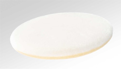毛足の異なるダブル起毛の両面パフ付き。固めの【ベージュ色】の面で“しっかりカバーのファンデーション”として、