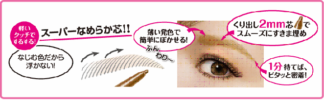 くり出し2o芯がスムーズにすきまを埋め、薄い発色で簡単にぼかせます。