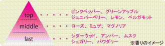 ★ほのかな甘さと清潔感が漂うトップ、華やかで芯のある女性像を思わせるミドル。