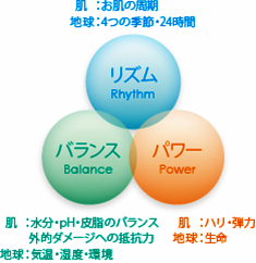 「リズム・バランス・エネルギー」の3つの要素に合わせて、“地球力”を肌に届けていきます。