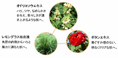 *3 オドリコソウエキス、レモングラス抽出液、ボタンエキス(保湿成分)